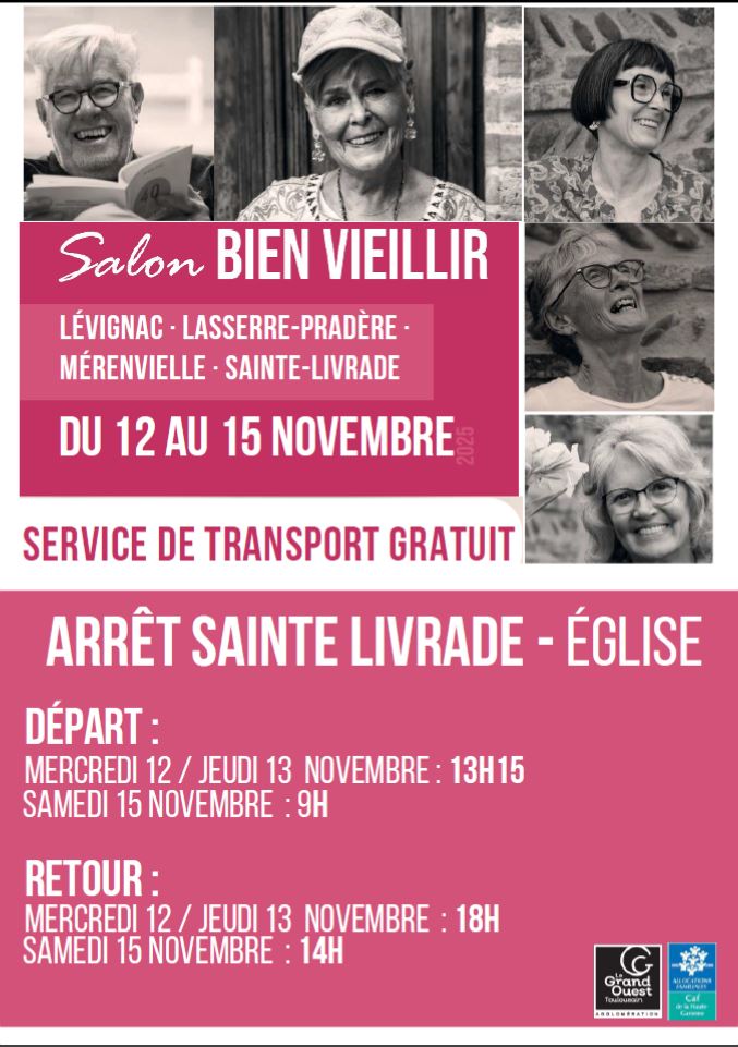Pour faciliter l'accès au Salon Bien Vieillir 2025, le Grand Ouest Toulousain met à disposition des habitants de la vallée de la Save un service de transport en bus gratuit du 12 au 15 novembre |