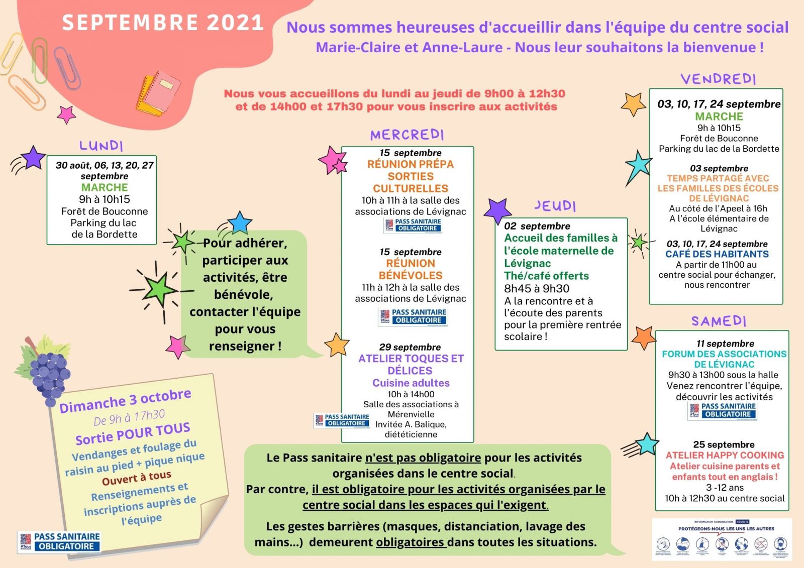 Programme du Centre Social Sept 2021vendredi 03 septembre 2021 - 14:17