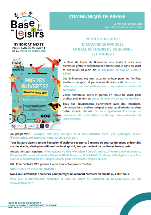 PORTES OUVERTES BASE DE LOISIRS DE BOUCONNEdimanche 11 mai 2025 - 16:42