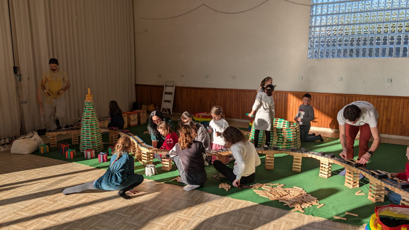 L’animation Kapla, animée par Martin, a rencontré un très grand succès. Pendant 2h30, les enfants (et les parents) ont pu construire librement autour du thème de Noël, guidés et encouragés par l’animateur : sapins de Noël, train de Noël, cadeaux, rennes et Père Noël.