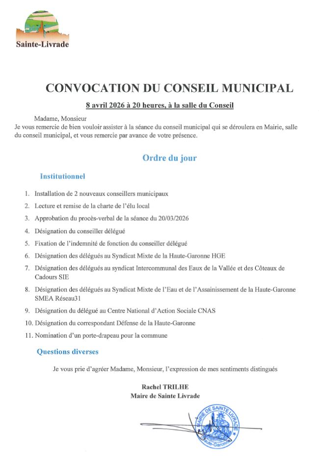 Convocation Conseil Municipal-8Avril-20hmercredi 01 avril 2026 - 22:38